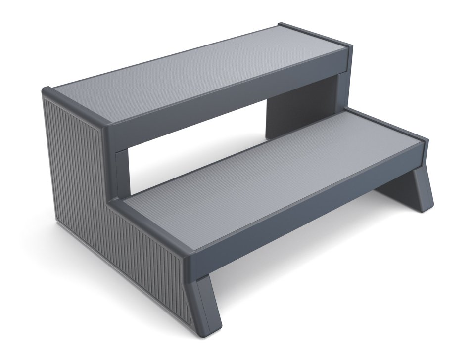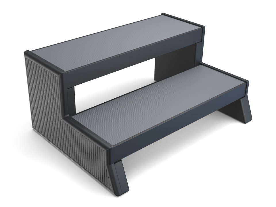 Dvoubarevné schůdky s nášlapy ve třech různých barevných variantách, které ladí s kabinetem vířivky.